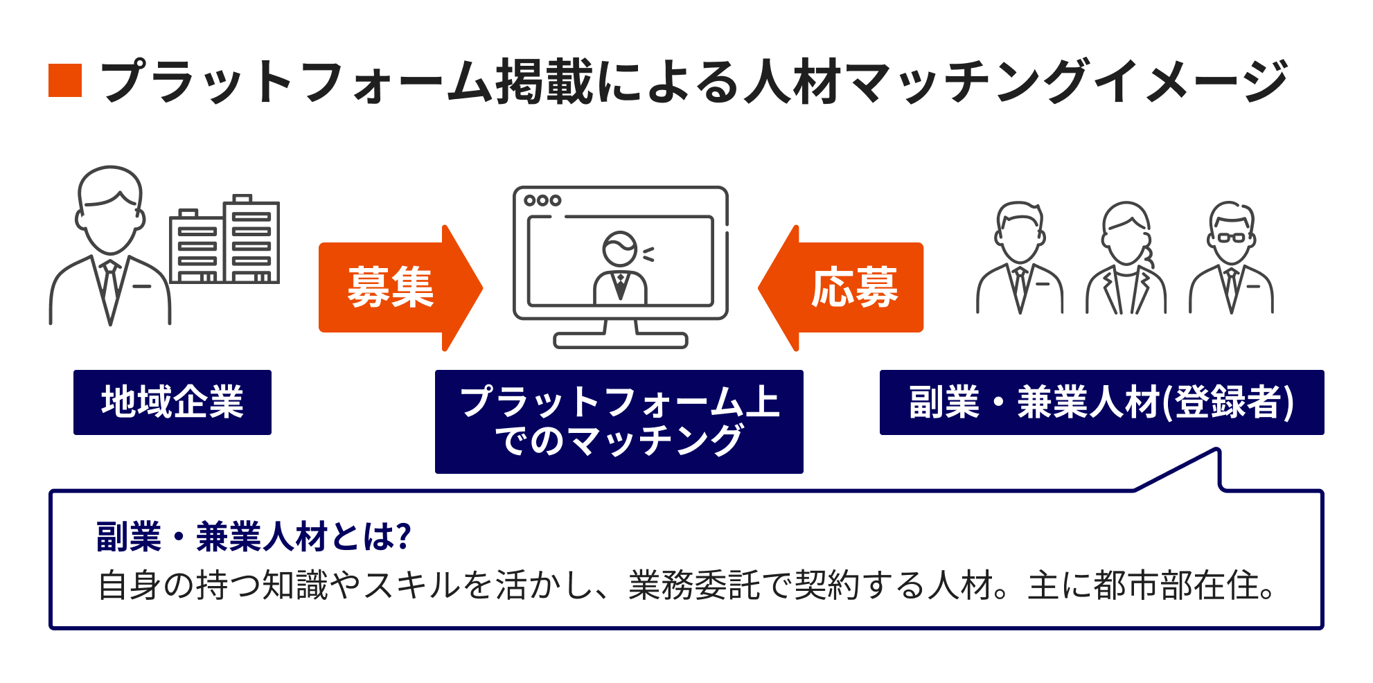 本事業では、地域貢献意欲が高い副業・兼業人材と地域企業をマッチングし、四国の企業の経営課題の解決を図るとともに、地域へ移住しなくても、副業という形で都市から地方へと「スキルをシフト」させることで地域課題の解決、活性化に繋げることを目指しています。